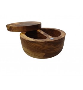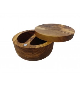 Main à sel double compartiment en bois d’olivier fait-main, idéale pour conserver tous les arômes.