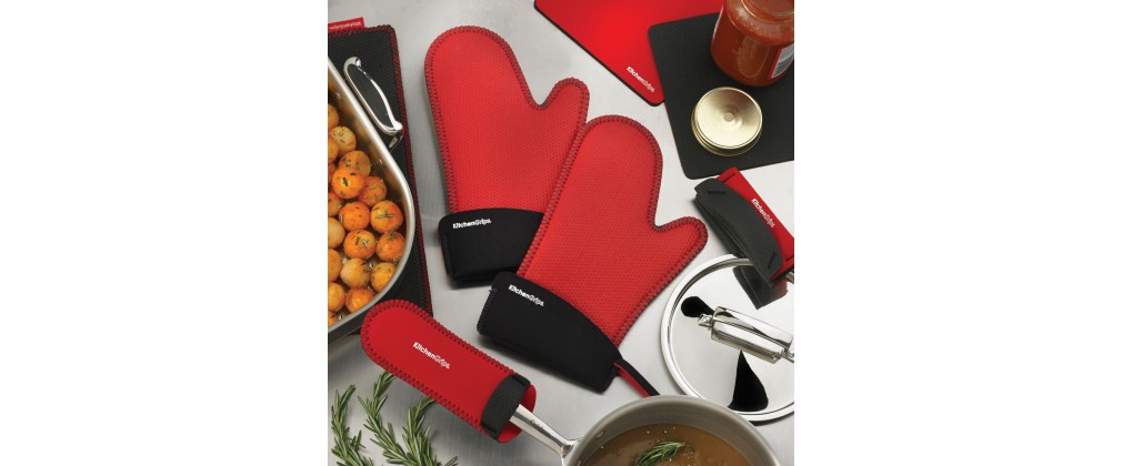 Depuis 1985, Kitchen Grips Inc. fabrique des textiles primés. Ses produits et designs avant-gardistes ont révolutionné la façon de cuisiner dans le monde entier grâce à une technologie innovante. Kitchen Grips Inc. propose une gamme unique de gants de cuisine et de protections pour les mains en FLXaPrene™.