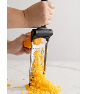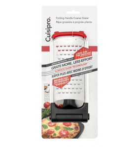 The Cuisipro Folding Grater Coarse, incorporates Surface Glide Technology™, and soft-touch handle for easy grip. Exclusive to Cuisipro, Surface Glide Technology™ grooved grating surface takes etched graters to the next level by creating the perfect balance between ease of grating and maximum efficiency. The science behind this technology is based on the repeated grooved pattern that is spread evenly across the face of the grating surface, creating a larger cutting surface for food and allowing you to grate more with less effort.