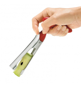 The Cuisipro Apple Corer is a simple tool that removes and disposes of the apple core, seeds and center fibre effortlessly. In the closed position, insert tool into apple and gently twist into the fruit. Pull out core and press lever for easy core disposal.