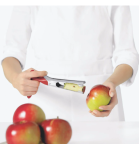 • Ergonomic handle to effortlessly twist or push corer though the apple