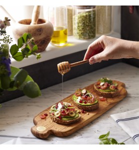 Se raye peu et n'absorbe pas les odeurs. Préserve la lame des couteaux. Nourrie à la cire d'abeille. S’entretient avec une huile végétale ou la cire pour bois culinaires Bérard.