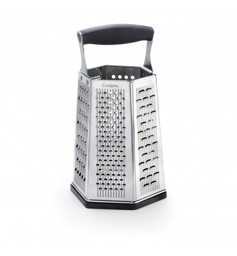 La râpe Cuisipro à 6 faces est dotée de la technologie Surface Glide et d'une poignée ergonomique pour une prise en main facile.