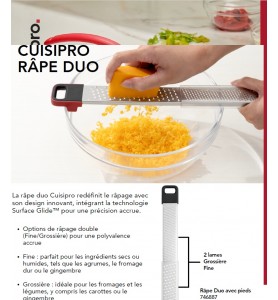 La râpe duo Cuisipro redéfinit le râpage avec son design innovant, intégrant la technologie Surface Glide™ pour une précision accrue.