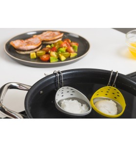 • Les trous à l'arrière du cuiseur à œufs pochés facilitent l'évacuation de l'eau, évitant ainsi que l'eau de cuisson ne reste sur l'œuf.
