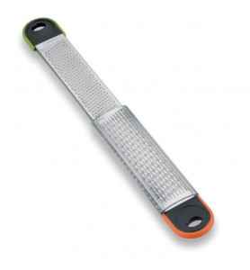 Deux surfaces de râpage. Surface fine pour zestes de citron, parmesan, muscade et cannelle.
