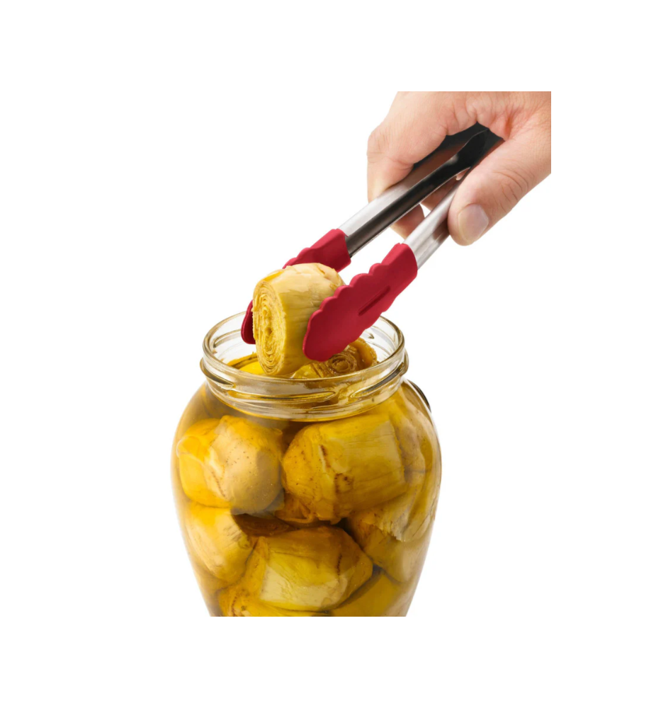 Les mini Pinces Cuisipro Piccolo en silicone sont élégantes, durables et faciles à nettoyer. La tête en silicone alimentaire est inodore, résistante aux taches et peut être utilisée sans danger sur les surfaces antiadhésives.