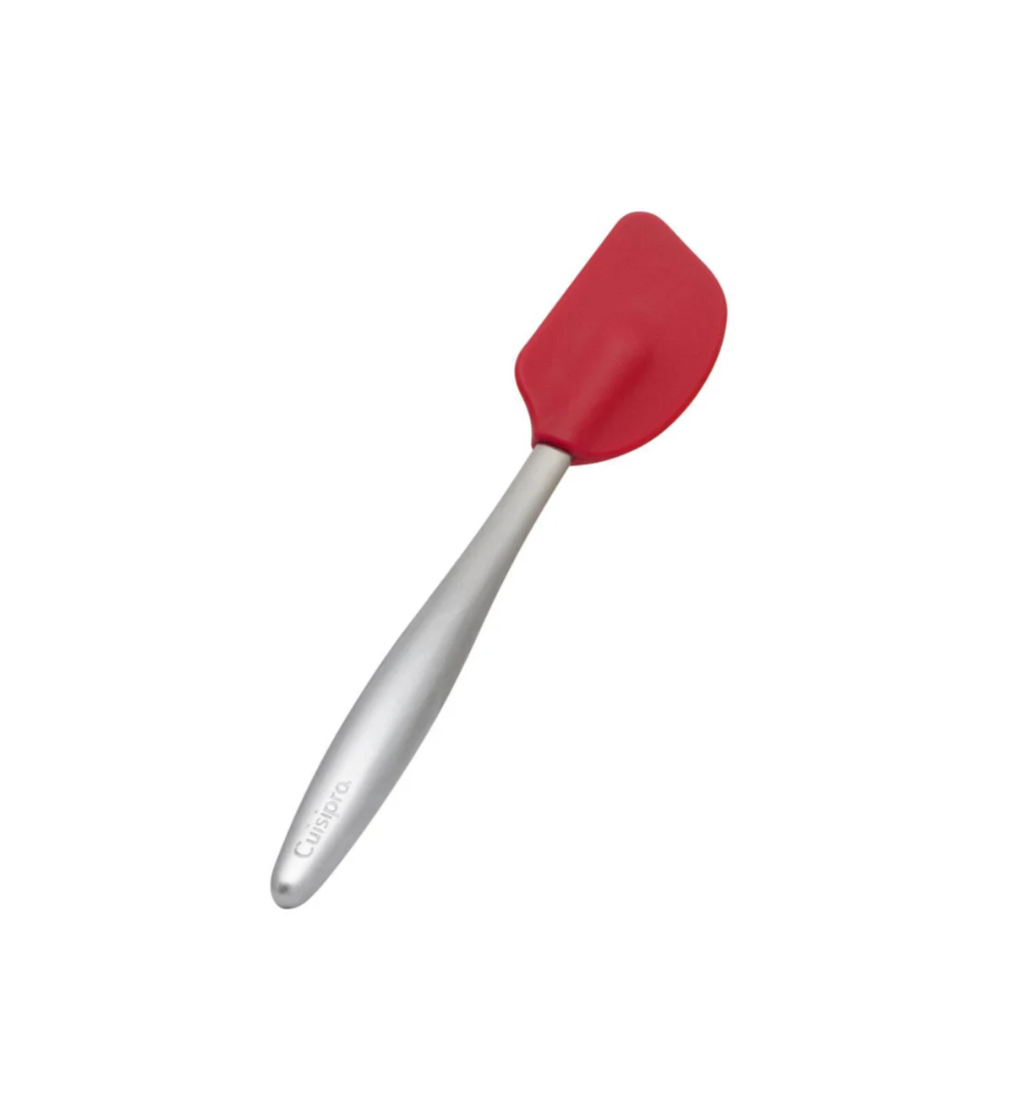 La mini spatule 20cm Cuisipro Piccolo en silicone est élégante, durable et facile à nettoyer. La tête en silicone alimentaire est inodore, résistante aux taches et peut être utilisée sans danger sur les surfaces antiadhésives.