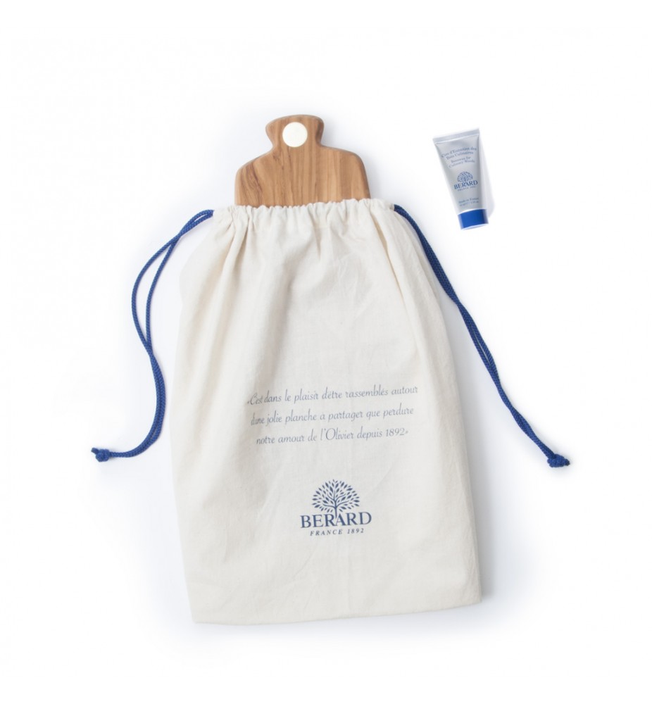 Se raye peu et n'absorbe pas les odeurs. Préserve la lame des couteaux. Nourrie à la cire d'abeille. S’entretient avec une huile végétale ou la cire pour bois culinaires Bérard.