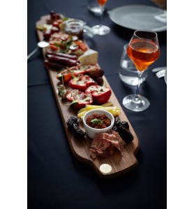 Pratique : Longue et munie de deux poignets, elle permet la présentation d’apéritifs dinatoires gourmands, de plateaux de fromages, charcuterie, sushis, etc.